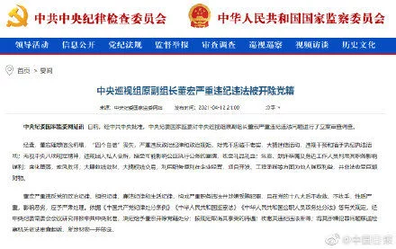 【中央巡视组原副组长董宏被开除党籍】据中央纪委国家监委网站消息,日前,经中共中央批准,中央纪委国家监委对中央巡视组原副组长董宏严重违纪违法问题进行了立案审查调查。