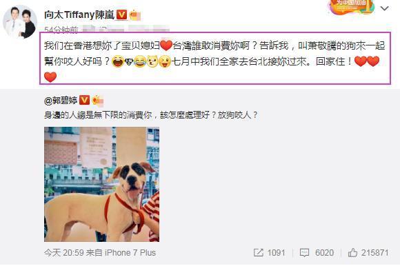 一小时后,高效的向太随即留言表示,我们在香港想你了……让萧敬腾的狗一起帮你咬人。