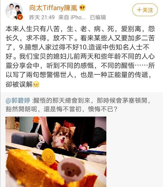 不久,向太又一次出面解释,是因为参加心灵分享会所以感慨而已。